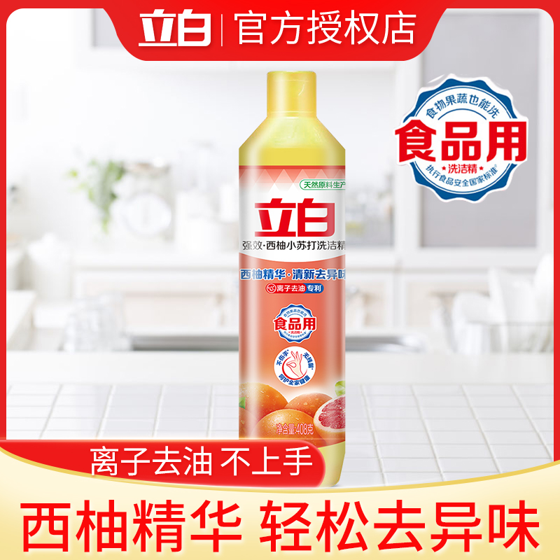 立白西柚洗洁精家用小瓶装家庭装食品级不伤手餐饮洗涤剂408g