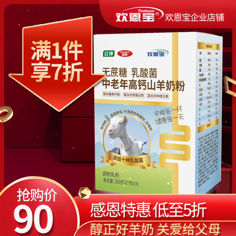 欢恩宝无蔗糖乳酸菌中老年高钙山羊奶粉320g 益生菌成人全家热门设计联盟服务商