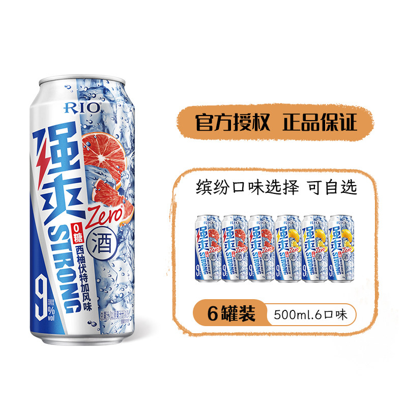 RIO锐澳强爽9度0糖预调鸡尾酒西柚柠檬伏特加气泡果酒500ml*6整箱热门设计联盟服务商